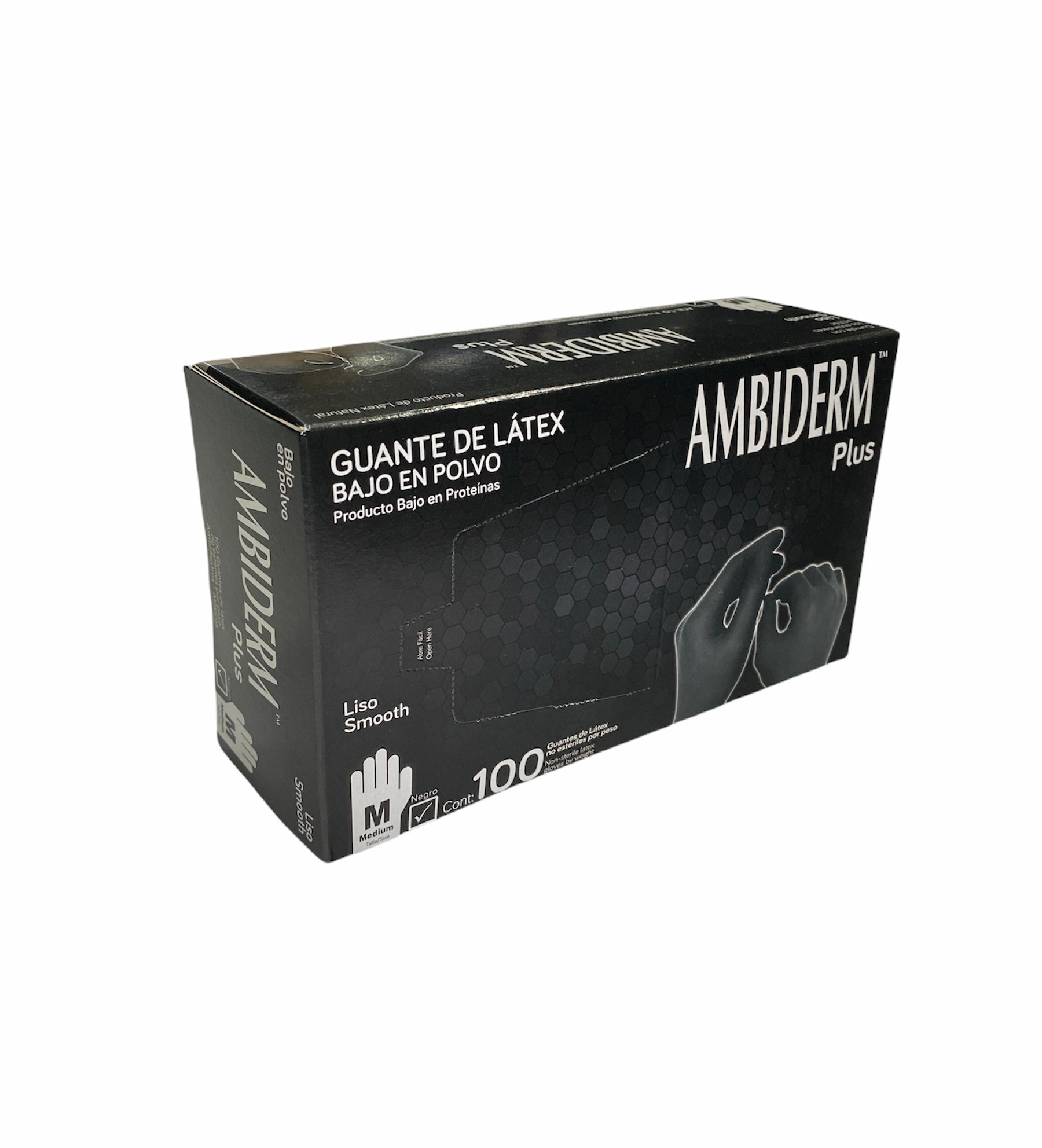 Guantes de todas las tallas para tatuar marca ambiderm negro, bajo en polvo 100 pzas.