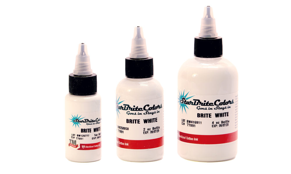 El Brite White de Starbrite es considerado el mejor de los blancos para tatuar por artistas en todo el mundo por su resistencia a la oxidación que hace que su color permanezca siempre blanco.